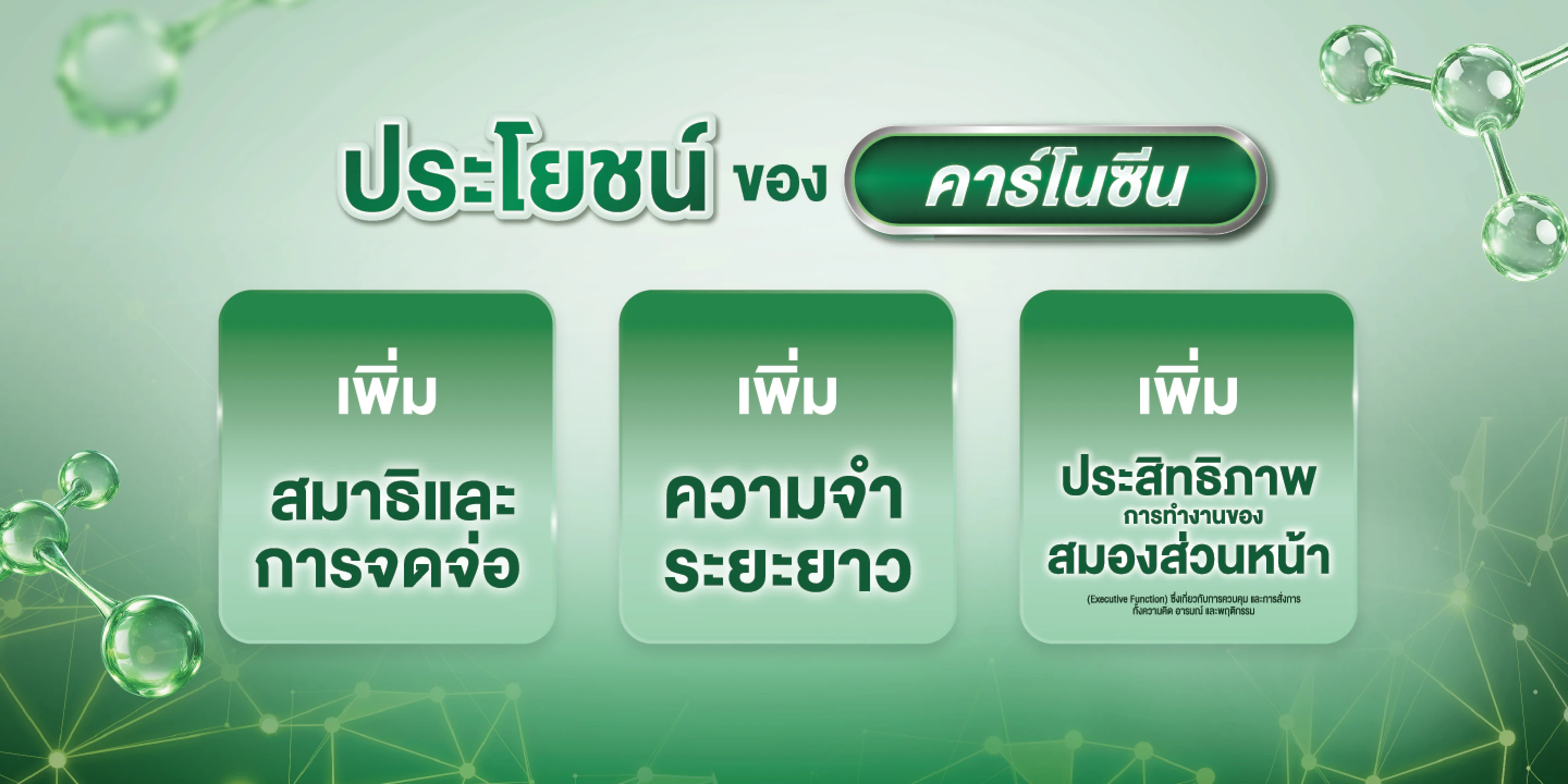 เสริมสมรรถภาพการทำงานของ สมอง และร่างกาย กระตุ้นการ ไหลเวียนเลือดในสมอง พร้อมปรับ สมดุลการทำงานของสมอง ที่เกี่ยวข้องกับความคิด