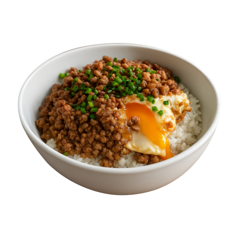 - ตักราดบนข้าว โรยพริกไทย พร้อมเสิร์ฟ